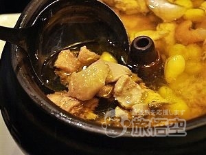 汽鍋というのは、底がせり上がった突起物がある独特な鍋でつくられる鶏のスープ、直接鶏を茹でるのではなく、この鍋の下にもうひとつ鍋をおいて湯を沸かし、その蒸気が突起物を通って鶏を蒸しながらスープになります。 肉はやわらかくておいしく、またスープも見た目ほど脂っぽい感じではなく、うま味のある味付け。日本の美味しいラーメン屋のチキンスープをあっさりしたような味付けで、日本人の口にあいます。 |