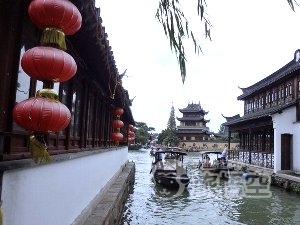 上海市街から西に車で40~45分の場所に位置する『朱家角』。朱家角は明の万暦年間から続く水郷の古鎮で、現在でも明清時代の建物が残され、保護指定を受けています。水路に大小さまざまの石橋掛かり、のどかで美しい水郷の風景が広がっています。古い街並みには、粽(ちまき)やお土産物を売るお店が並び、散策が楽しい。また、手こぎの小舟に乗って、朱家角を遊覧する「古運河遊覧」もお楽しみの一つです。小舟からは、水郷に育まれる人々の暮らしが垣間みられ、興味深い体験ができます。