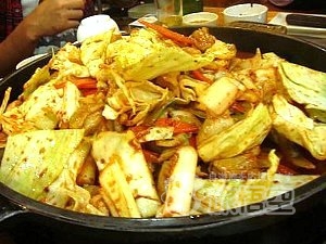 同店名物のようでほとんどのお客さんが、タッカルビ(2人前/78元)を食べていました。キャベツ、玉葱、人参、サツマイモ、トック(お餅)、鶏肉が大盛り!店員さんが炒めてくれます。野菜がしんなりし、店員さんのOKサインが出れば食べごろ。甘辛くて、とっても美味。具が少なくなれば、〆のチャーハンを。店員さんが具をハサミで刻んで、ご飯、海苔、レタスを入れてくれます。 今回は卵を追加。他の単品料理も美味しかったです。 一品の量が多いので、人数が多い方が色々と食べられて良いかと思います。韓国旅行気分で楽しめる韓国街&タッカルビ、オススメです。 |
