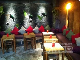 トムヤムクンはココナッツミルクがベースで、酸味が少なめ。 外にソファー席もあり、飲み物だけの利用も出来そうです。 |