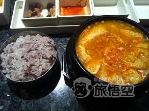まずは、3種類のパンチャンがサービスされます。キムチ、お豆、茎ワカメ。 ~あさり&豆腐のチゲ~ 雑穀米付き。 あさり、豚肉、卵とたっぷりのお豆腐入り。 他のお店のチゲとは違い、辛さ控え目で薄味です。 これだけで満腹に。他には牛骨スープ、ツナ&豆腐チゲ、ビビンバなど。焼肉の種類も豊富。 お買い物途中にサクッと食べられる韓国料理店です。 |