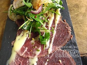 ●前菜 ~ビーフカルパッチョ~ 丁度良い量でワインとの相性も◎ マリネされた生野菜と美味しく頂きました。 前菜は他に、ブルスケッタ、スープ、サラダなどがありました。 ●パンが人数分サーブされます。 ピザ生地のような?感じです。焼きたてで、温かくて美味しい! ●メイン ~鱸のグリル 紫芋ピュレー添え~ 皮はパリッと焼かれていて、臭みのない白身魚のグリル。 紫芋とお魚の組み合わせは初めてでしたが、意外と美味しかったです。 メインはステーキ、グリルチキン、パスタなどがあり、どれも魅力的。 ●デザート ~ティラミス~ グラスワインも込みで128元はお得! 雰囲気もサービスも良くて満足なランチでした。ワインリストも充実しているので、オススメです。 |
